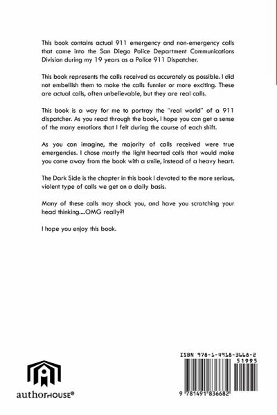 This book contains actual 911 emergency and non-emergency calls that came into the San Diego Police Department Communications Division during my 19 years as a Police 911 Dispatcher. This book represents the calls received as accurately as possible. I did not embellish them to make the calls funnier or more exciting. These are actual calls, often unbelievable, but they are real calls. This book is a way for me to portray the "real world" of a 911 dispatcher. As you read through the book, I hope you can get a sense of the many emotions that I felt during the course of my shift. The Dark Side is the chapter I devoted to the more serious, violent type of calls we get on a daily basis. I hope you enjoy the book.