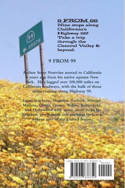 Take a trip through California's Central Valley with a newcomer's perspective like you've never seen. 9 From 99- Experiences In California's Central Valley travels from Stockton to Hollywood along historic Highway 99. The cities of Modesto, Turlock, Merced, Clovis, Fresno, Tulare, and Bakersfield are featured. The book includes chapters on agriculture, Yosemite National Park, and famous people who have lived in the Central Valley of California. Learn more about the Bob Hope Theatre, a statue honoring the man behind a movie classic, Billy Graham's Modesto Manifesto, Operation Power Flite, the Big Two-Story Bulldozer, a young man who became a hero for children, the California Memorial to the victims and first responders of the World Trade Center attacks, and country music legend Buck Owens. Each chapter centers on a specific community as you head south along this unique roadway.