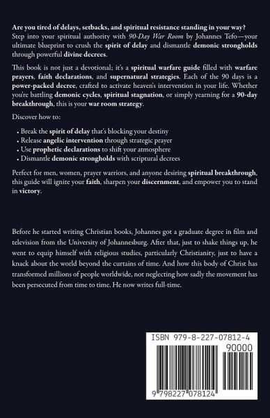 Are you tired of delays, setbacks, and spiritual resistance standing in your way? Step into your spiritual authority with 90-Day War Room by Johannes Tefo-your ultimate blueprint to crush the spirit of delay and dismantle demonic strongholds through powerful divine decrees. This book is not just a devotional; it's a spiritual warfare guide filled with warfare prayers, faith declarations, and supernatural strategies. Each of the 90 days is a power-packed decree, crafted to activate heaven's intervention in your life. Whether you're battling demonic cycles, spiritual stagnation, or simply yearning for a 90-day breakthrough, this is your war room strategy. Discover how to:Break the spirit of delay that's blocking your destiny Release angelic intervention through strategic prayer Use prophetic declarations to shift your atmosphere Dismantle demonic strongholds with scriptural decrees Perfect for men, women, prayer warriors, and anyone desiring spiritual breakthrough, this guide will ignite your faith, sharpen your discernment, and empower you to stand in victory. If you've read books like Fervent, The Art of War for Spiritual Battle, or Prayers That Rout Demons, this is your next must-have!