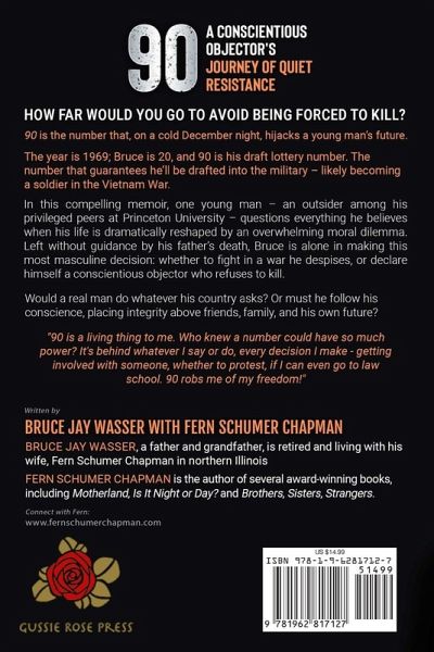 How far would you go to avoid being forced to kill? 90 is the number that, on a cold December night, hijacks a young man's future. The year is 1969; Bruce is 20, and 90 is his draft lottery number. The number that guarantees he'll be drafted into the military-likely becoming a soldier in the Vietnam War. In this compelling memoir, one young man-an outsider among his privileged peers at Princeton University - questions everything he believes as his life is dramatically reshaped by an overwhelming moral dilemma. His father's death deprives Bruce of the guidance he needs in this most masculine decision: whether to fight or declare himself a conscientious objector who refuses to kill. Would a real man do whatever his country asks? Or must he follow his conscience, placing integrity above friends, family, and his own future? "90 is a living thing to me. Who knew a number could have so much power? It's behind whatever I say or do, every decision I make - getting involved with someone, whether to protest, if I can even go to law school. 90 robs me of my freedom! "