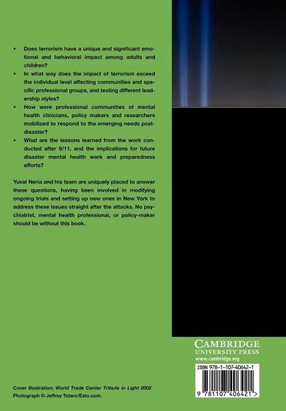 Does terrorism have a unique and significant emotional and behavioral impact among adults and children? In what way does the impact of terrorism exceed the individual level and affect communities and specific professional groups, and test different leadership styles? How were professional communities of mental health clinicians, policy-makers and researchers mobilized to respond to the emerging needs post disaster? What are the lessons learned from the work conducted after 9/11, and the implications for future disaster mental health work and preparedness efforts? Yuval Neria and his team are uniquely placed to answer these questions having been involved in modifying ongoing trials and setting up new ones in New York to address these issues straight after the attacks. No psychiatrist, mental health professional or policy-maker should be without this book.