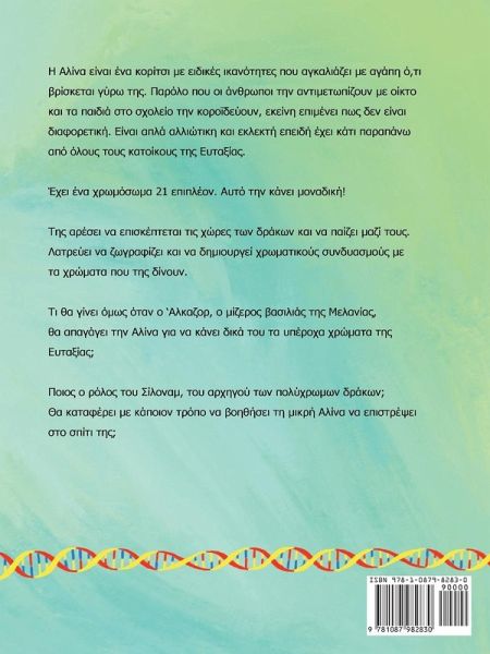 Η Αλίνα είναι ένα κορίτσι με ειδικές ικανότητες που αγκαλιάζει με αγάπη ότι βρίσκεται γύρω της. Παρόλο που οι άνθρωποι την αντιμετωπίζουν με οίκτο και τα παιδιά στο σχολείο την κοροιδεύουν, εκείνη επιμένει πως δεν είναι διαφορετική. Είναι απλά αλλιώτικη και εκλεκτή επειδή έχει κάτι παραπάνω από όλους τους κατοίκους της Ευταξίας. Έχει ένα χρωμόσωμα 21 επιπλέον. Αυτό την κάνει μοναδική! Της αρέσει να επισκέπτεται τις χώρες των δράκων και να παίζει μαζί τους. Λατρεύει να ζωγραφίζει και να δημιουργεί χρωματικούς συνδυασμούς με τα χρωματα που της δίνουν. Τι θα γίνει όμως όταν ο Άλκαζορ, ο μίζερος βασιλιάς της Μελάνιας θα απαγάγει την Αλινα για να κάνει δικά του τα υπέροχα χρώματα της Ευταξίας; Ποιος ο ρόλος του Σίλοναμ του αρχηγού των πολύχρωμων δράκων; Θα καταφέρει με κάποιον τρόπο να βοηθήσει την μικρή Αλίνα να επιστρέψει στο σπίτι της;