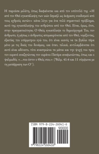 Η παρούσα μελέτη, όπως διαφαίνεται και από τον υπότιτλό της Η από τον Θεό εγκατάλειψη των υιών Ισραήλ ως έκφραση ονειδισμού από τους εχθρούς αυτών κάνει λόγο για ένα πολύ σημαντικό πρόβλημα, αυτό της εγκατάλειψης του ανθρώπου από τον Θεό. Είναι, όμως, έτσι, στην πραγματικότητα; Ο Θεός εγκατέλειψε το δημιούργημά Του, τον άνθρωπο, ή μήπως ο άνθρωπος απομακρύνεται από τον Θεό, νομίζοντας, εξαιτίας του υπέρμετρου εγώ του, ότι είναι ικανός να τα βγάλει πέρα μόνο με τις δικές του δυνάμεις, και όταν, τελικά, αντιλαμβάνεται ότι αυτό είναι αδύνατο, τότε ανασηκώνει τα μάτια και την ψυχή του προς τον ουρανό αναζητώντας τον ουράνιο Πατέρα αναφωνώντας, όπως και ο ψαλμωδός ...poy° e]stin o Ueo£w soy; (Ψαλμ. 41:4 και 11 σύμφωνα με τη μετάφραση των Ο΄).