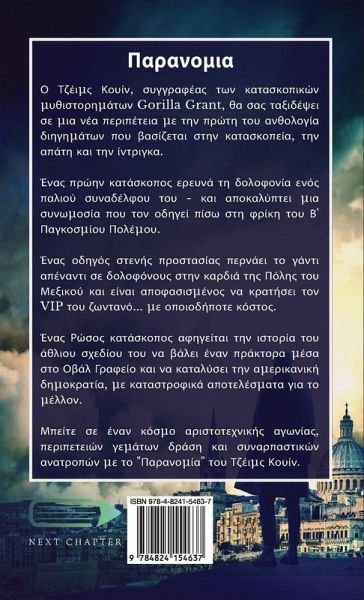 Ο Τζέιμς Κουίν, συγγραφέας των κατασκοπικών μυθιστορημάτων Gorilla Grant, θα σας ταξιδέψει σε μια νέα περιπέτεια με την πρώτη του ανθολογία διηγημάτων που βασίζεται στην κατασκοπεία, την απάτη και την ίντριγκα. Ένας πρώην κατάσκοπος ερευνά τη δολοφονία ενός παλιού συναδέλφου του - και αποκαλύπτει μια συνωμοσία που τον οδηγεί πίσω στη φρίκη του Β' Παγκοσμίου Πολέμου. Ένας οδηγός στενής προστασίας περνάει το γάντι απέναντι σε δολοφόνους στην καρδιά της Πόλης του Μεξικού και είναι αποφασισμένος να κρατήσει τον VIP του ζωντανό... με οποιοδήποτε κόστος. Ένας Ρώσος κατάσκοπος αφηγείται την ιστορία του άθλιου σχεδίου του να βάλει έναν πράκτορα μέσα στο Οβάλ Γραφείο και να καταλύσει την αμερικανική δημοκρατία, με καταστροφικά αποτελέσματα για το μέλλον. Μπείτε σε έναν κόσμο αριστοτεχνικής αγωνίας, περιπετειών γεμάτων δράση και συναρπαστικών ανατροπών με το "Παρανομία" του Τζέιμς Κουίν.