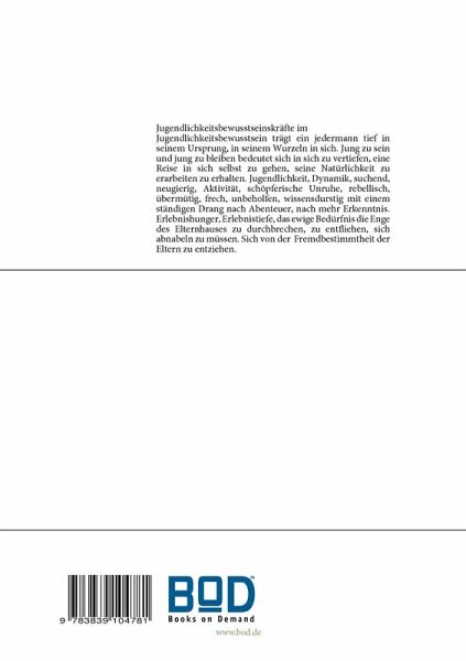 Jugendlichkeitsbewusstseinskräfte im Jugendlichkeitsbewusstsein trägt ein jedermann tief in seinem Ursprung, in seinem Wurzeln in sich. Jung zu sein und jung zu bleiben bedeutet sich in sich zu vertiefen, eine Reise in sich selbst zu gehen, seine Natürlichkeit zu erarbeiten zu erhalten. Jugendlichkeit, Dynamik, suchend, neugierig, Aktivität, schöpferische Unruhe, rebellisch, übermütig, frech, unbeholfen, wissensdurstig mit einem ständigen Drang nach Abenteuer, nach mehr Erkenntnis. Erlebnishunger, Erlebnistiefe, das ewige Bedürfnis die Enge des Elternhauses zu durchbrechen, zu entfliehen, sich abnabeln zu müssen. Sich von der Fremdbestimmtheit der Eltern zu entziehen.