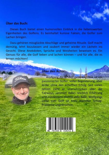 Dieses Buch bietet einen humorvollen Einblick in die liebenswerten Eigenheiten des Golfens. Es beinhaltet kuriose Fakten, die Golfer zum Lachen bringen.Dazu gehören missglückte Abschläge und geheime Rituale. Golf macht demütig, lehrt loszulassen und zaubert immer wieder ein Lächeln ins Gesicht. Diese Anekdoten, Sprüche und Weisheiten beweisen es. Ein Genuss für alle, die Golf lieben und lachen können - und für alle, die es lernen möchten!