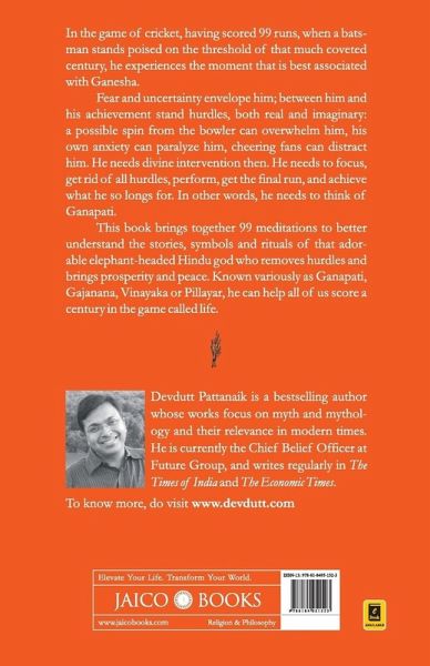 Stories, Symbols and Rituals of India's beloved elephant-headed deity In the game of cricket, having scored 99 runs, when a bats-man stands poised on the threshold of that much coveted century, he experiences the moment that is best associated with Ganesha. Fear and uncertainty envelope him; between him and his achievement stand hurdles, both real and imaginary: a possible spin from the bowler can overwhelm him, his own anxiety can paralyze him, cheering fans can distract him. He needs divine intervention then. He needs to focus, get rid of all hurdles, perform, get the final run, and achieve what he so longs for. In other words, he needs to think of Ganapati. This book brings together 99 meditations to better understand the stories, symbols and rituals of that ador-able elephant-headed Hindu god who removes hurdles and brings prosperity and peace. Known variously as Ganapati, Gajanana, Vinayaka or Pillayar, he can help all of us score a century in the game called life.
