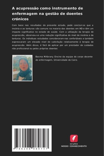 Com base nos resultados do presente estudo, pode concluir-se que a insónia e as tonturas são comuns na maioria dos doentes em HD e têm um impacto significativo no estado de saúde. Com a utilização da terapia de acupressão, observou-se uma redução significativa do nível de insónia e de tonturas. Os indivíduos estudados consideraram-nas confortáveis e também expressaram um elevado nível de satisfação relativamente à terapia de acupressão. Além disso, é fácil de aplicar por um prestador de cuidados não profissional ou pelos próprios doentes