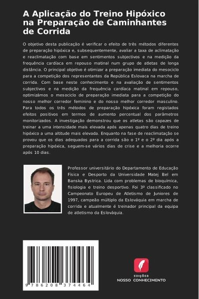 O objetivo desta publicação é verificar o efeito de três métodos diferentes de preparação hipóxica e, subsequentemente, avaliar a taxa de aclimatação e reaclimatação com base em sentimentos subjectivos e na medição da frequência cardíaca em repouso matinal num grupo de atletas de longa distância. O principal objetivo é otimizar a preparação imediata do mesociclo para a competição dos representantes da República Eslovaca na marcha de corrida. Com base neste conhecimento e na avaliação de sentimentos subjectivos e na medição da frequência cardíaca matinal em repouso, optimizámos o mesociclo de preparação imediata para a competição do nosso melhor corredor feminino e do nosso melhor corredor masculino. Para todos os três métodos de preparação hipóxica foram registados efeitos positivos em termos de aumento percentual dos parâmetros monitorizados. A investigação demonstrou que os atletas são capazes de treinar a uma intensidade mais elevada após apenas quatro dias de treino hipóxico a uma altitude mais elevada. Enquanto na fase de reaclimatação se provou que os dias adequados para a corrida são o 1º e o 2º dia após a preparação hipóxica, seguem-se vários dias de crise e a melhoria ocorre após 10 dias.