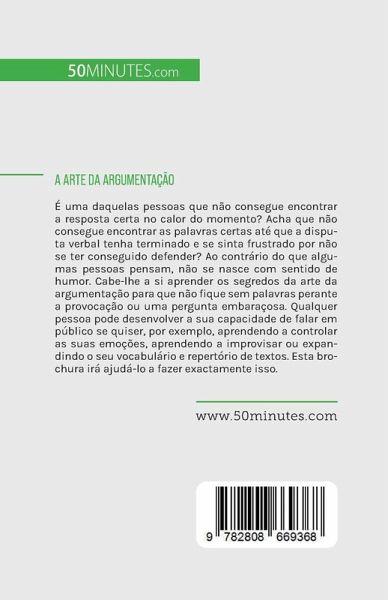 É uma daquelas pessoas que não consegue encontrar a resposta certa no calor do momento? Acha que não consegue encontrar as palavras certas até que a disputa verbal tenha terminado e se sinta frustrado por não se ter conseguido defender? Ao contrário do que algumas pessoas pensam, não se nasce com sentido de humor. Cabe-lhe a si aprender os segredos da arte da argumentação para que não fique sem palavras perante a provocação ou uma pergunta embaraçosa. Qualquer pessoa pode desenvolver a sua capacidade de falar em público se quiser, por exemplo, aprendendo a controlar as suas emoções, aprendendo a improvisar ou expandindo o seu vocabulário e repertório de textos. Esta brochura irá ajudá-lo a fazer exactamente isso.