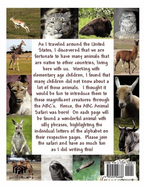 Come in one and all!! Come in and join the safari. Meet the lions, tigers, bears, birds and fish, and many more, they are all waiting to meet you! Come join them as they learn their ABC's. There are more than 26 animals waiting in this book to meet you. They come from all around the world and want you to join them on their trip. So run and get Mom and Dad so they can join the safari with you!!
