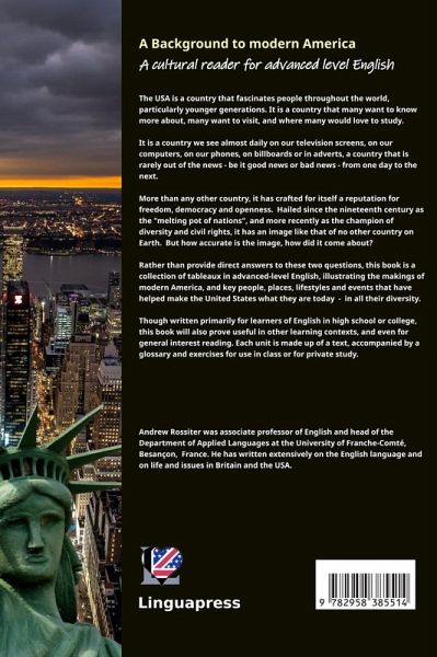 The USA is a country that fascinates people worldwide; but with its great contrasts, its diversity, its innovation and its iconic figures, the "leader of the free world" is a country that is not always easy to understand, particularly for those who have never set foot on American soil. Exploring the background to this country is thus a vital step for anyone wanting to comprehend the United States as a nation, its values, its priorities and the American way of life.This book is a balanced collection of twenty-two informative, connected but self-contained texts that throw light on different faces of modern America, its origins, its people and its institutions. As well as being complete in itself, each text is also part of an overall and rounded narrative that has been carefully written for the specific needs of advanced level students in schools and colleges around the world, including in the United States.Structured thematically, not by difficulty of language nor by grammar, this collection of texts offers an original and unique approach to the teaching of American studies in the context of ESL or EFL or language arts, at the higher end of secondary education or senior high school, and college / university. It is also appropriate for home reading and general interest.Texts, which vary in length between 700 and 1200 words and are mostly graded C1 on the CEFR scale (ACTFL Advanced Mid to Advanced High), are accompanied by a range of different language exercises designed to develop reading skills and linguistic awareness. Varied in function of each individual unit, these cover comprehension and expression, words and meanings, grammar and style. From native Americans and their past, to Los Angeles and its future, take a trip through the background to modern America, discover and learn.