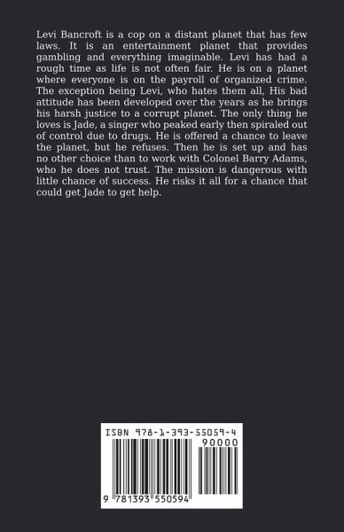 Levi Bancroft is a cop on a distant planet that has few laws. It is an entertainment planet that provides gambling and everything imaginable. Levi has had a rough time as life is not often fair. He is on a planet where everyone is on the payroll of organized crime. The exception being Levi, who hates them all, His bad attitude has been developed over the years as he brings his harsh justice to a corrupt planet. The only thing he loves is Jade, a singer who peaked early then spiraled out of control due to drugs. He is offered a chance to leave the planet, but he refuses. Then he is set up and has no other choice than to work with Colonel Barry Adams, who he does not trust. The mission is dangerous with little chance of success. He risks it all for a chance that could get Jade to get help.