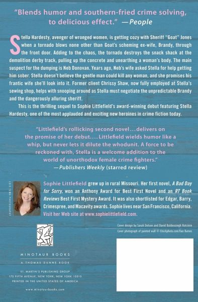 A New York Times Notable Book! Stella Hardesty, avenger of wronged women, is getting cozy with Sheriff "Goat" Jones when a tornado blows none other than Goat's scheming ex-wife, Brandy, through the front door. Adding to the chaos, the tornado destroys the snack shack at the demolition derby track, pulling up the concrete and unearthing a woman's body. The main suspect for the dumping is Neb Donovan. Years ago, Neb's wife asked Stella for help getting him sober. Stella doesn't believe the gentle man could kill any woman, and she promises his frantic wife she'll look into it. Former client Chrissy Shaw, now fully employed at Stella's sewing shop, helps with snooping around as Stella must negotiate with the unpredictable Brandy and the dangerously alluring sheriff. A Bad Day for Pretty is the thrilling sequel to Sophie Littlefield's award-winning debut featuring Stella Hardesty, one of the most applauded and exciting new heroines in crime fiction today.