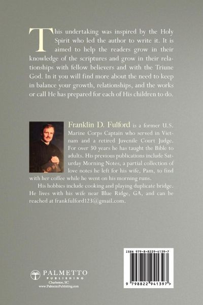 This spiritual guidebook aims to help those hungry for God's word discover more about who they are in Christ and experience growth in their relationships and fruitful works. If you are looking to grow spiritually and look at concepts you might not have seen about the scriptures, then pick up A Balanced Christian Life, a guidebook to deepening your Christian walk. Within the pages of A Balanced Christian Life, expand your understanding of the scriptures with Biblically based teachings as well as personal insights and stories from author Franklin Fulford's life. Be enriched by the lessons the Holy Spirit has given to Fulford, and that he has taught to others for over 30 years. A Balanced Christian Life will appeal to readers who are searching to understand more about scriptures and God's calling for their lives. Readers who embark through its pages will experience growth in their relationship with God, their relationships with others, and see more fruitful works in their lives. If you're looking to better understand God's word and live your Christian walk with authenticity, then A Balanced Christian Life can help you attain the Biblically centered life you desire.