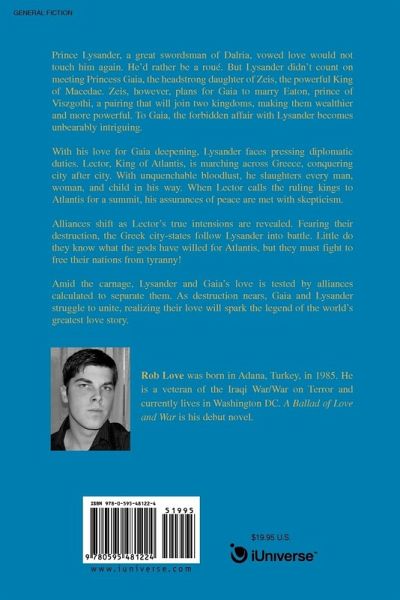 Prince Lysander, a great swordsman of Dalria, vowed love would not touch him again. He'd rather be a roué. But Lysander didn't count on meeting Princess Gaia, the headstrong daughter of Zeis, the powerful King of Macedae. Zeis, however, plans for Gaia to marry Eaton, prince of Viszgothi, a pairing that will join two kingdoms, making them wealthier and more powerful. To Gaia, the forbidden affair with Lysander becomes unbearably intriguing. With his love for Gaia deepening, Lysander faces pressing diplomatic duties. Lector, King of Atlantis, is marching across Greece, conquering city after city. With unquenchable bloodlust, he slaughters every man, woman, and child in his way. When Lector calls the ruling kings to Atlantis for a summit, his assurances of peace are met with skepticism. Alliances shift as Lector's true intensions are revealed. Fearing their destruction, the Greek city-states follow Lysander into battle. Little do they know what the gods have willed for Atlantis, but they must fight to free their nations from tyranny! Amid the carnage, Lysander and Gaia's love is tested by alliances calculated to separate them. As destruction nears, Gaia and Lysander struggle to unite, realizing their love will spark the legend of the world's greatest love story.
