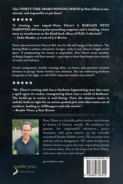 Peter Eliott is a lyrically gifted author and winner of over a dozen literary awards. He combines his passion for suspenseful adventure, poignant literature, and grim humor in the critically acclaimed Shadow Bidder series. He currently lives with his wife in Amagansett, NY, where he devours literary fiction to grow his ever-expanding arsenal of creative ideas. Stay in the loop with Peter Eliott, and never miss his next release! petereliott.cominstagram.com/petereliottofficial/facebook.com/petereliottofficial