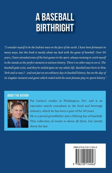 "The days seem like minutes, but the memories last forever." Take it from this senior citizen and proud grandfather. Luck is real. I have attended some of the best baseball games ever, always seeming to catch myself in the stands at the perfect moment to witness history. There's no other way to see it: the baseball gods exist, and they have smiled upon me my whole life. Just like baseball, I was born in New York-on a day which ended with the most famous play in sports history. A Baseball Birthright explores family and friendship through the eyes of a keen observer of the National Pastime, as he lives through love, loss, and aging; chronicling the connections made between family, friends, and a love of the game. Join the author on his 60-year journey with baseball, as he guides you along the pathways of his life story, current events, and vivid accounts of the games.