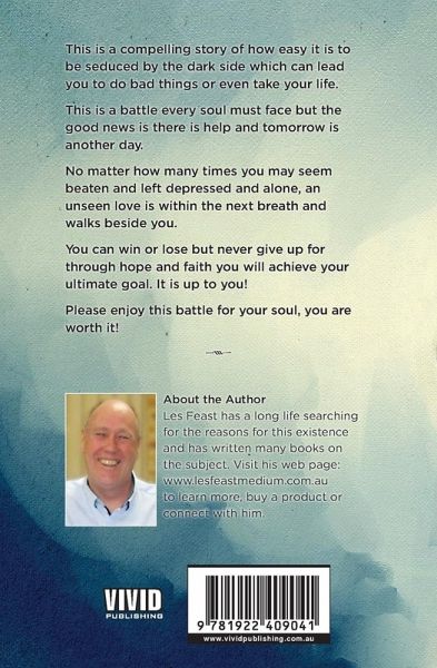 This is a compelling story of how easy it is to be seduced by the dark side which can lead you to do bad things or even take your life. This is a battle every soul must face but the good news is there is help and tomorrow is another day. No matter how many times you may seem beaten and left depressed and alone, an unseen love is within the next breath and walks beside you. You can win or lose but never give up for through hope and faith you will achieve your ultimate goal. It is up to you! Please enjoy this battle for your soul, you are worth it!