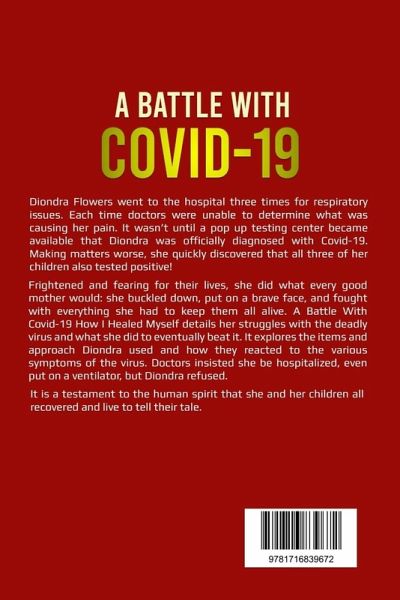 Diondra Flowers went to the hospital three times for respiratory issues. Each time doctors were unable to determine what was causing her pain. It wasn't until a pop up testing center became available that Diondra was officially diagnosed with Covid-19. Making matters worse, she quickly discovered that all three of her children also tested positive! Frightened and fearing for their lives, she did what every good mother would: she buckled down, put on a brave face, and fought with everything she had to keep them all alive. A Battle With Covid-19 How I Healed Myself details her struggles with the deadly virus and what she did to eventually beat it. It explores the items and approach Diondra used and how they reacted to the various symptoms of the virus. Doctors insisted she be hospitalized, even put on a ventilator, but Diondra refused. It is a testament to the human spirit that she and her children all recovered and live to tell their tale.