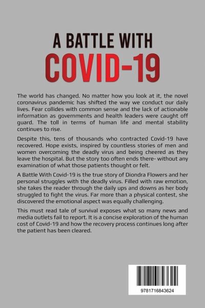 The world has changed. No matter how you look at it, the novel coronavirus pandemic has shifted the way we conduct our daily lives. Fear collides with common sense and the lack of actionable information as governments and health leaders were caught off guard. The toll in terms of human life and mental stability continues to rise. Despite this, tens of thousands who contracted Covid-19 have recovered. Hope exists, inspired by countless stories of men and women overcoming the deadly virus and being cheered as they leave the hospital. But the story too often ends there- without any examination of what those patients thought or felt. A Battle With Covid-19 is the true story of Diondra Flowers and her personal struggles with the deadly virus. Filled with raw emotion, she takes the reader through the daily ups and downs as her body struggled to fight the virus. Far more than a physical contest, she discovered the emotional aspect was equally challenging. This must read tale of survival exposes what so many news and media outlets fail to report. It is a concise exploration of the human cost of Covid-19 and how the recovery process continues long after the patient has been cleared.