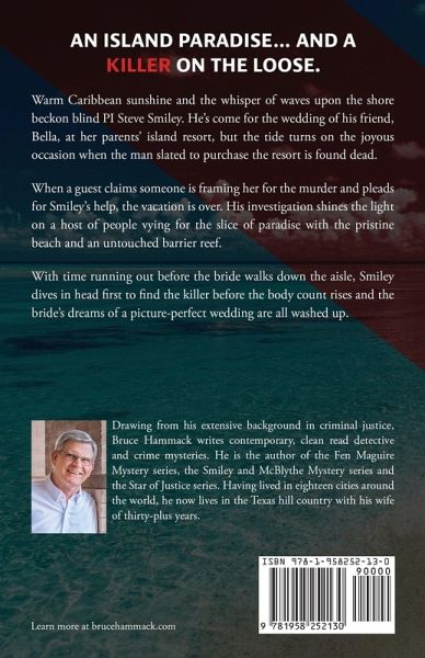 An island paradise... and a killer on the loose. Warm Caribbean sunshine and the whisper of waves upon the shore beckon blind PI Steve Smiley. He's come for the wedding of his friend, Bella, at her parents' island resort, but the tide turns on the joyous occasion when the man slated to purchase the resort is found dead. When a guest claims someone is framing her for the murder and pleads for Smiley's help, the vacation is over. His investigation shines the light on a host of people vying for the slice of paradise with the pristine beach and an untouched barrier reef. With time running out before the bride walks down the aisle, Smiley dives in head first to find the killer before the body count rises and the bride's dreams of a picture-perfect wedding are all washed up. Escape to the islands with Smiley and McBlythe as they hunt for a killer intent on having a pristine St. Croix beach, no matter who gets in his way. A great whodunit delivered with no foul language, sex or graphic violence!