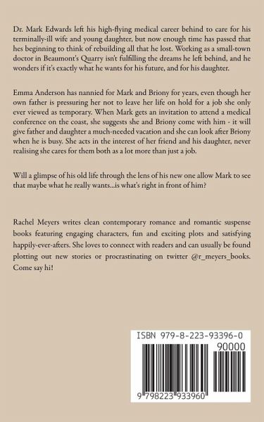 Return to Beaumont's Quarry, a sweet small town full of love, life and laughter. Dr. Mark Edwards left his high-flying medical career behind to care for his terminally-ill wife and young daughter, but now enough time has passed that hes beginning to think of rebuilding all that he lost. Living the life of a small-town doctor in Beaumont's Quarry isn't fulfilling the potential of the career he left behind, and he wonders if it's exactly what he wants for his future, and for his daughter. Emma Anderson has nannied for Mark and Briony for years, even though her own father is pressuring her not to leave her life on hold for a job she only ever viewed as temporary. When Mark gets an invitation to attend a medical conference on the coast, she suggests she and Briony come with him - it will give father and daughter a much-needed vacation and she can look after Briony when he is busy. She acts in the interest of her friend and his daughter, never realising she cares for them both as a lot more than just a job. Will a glimpse of his old life through the lens of his new one allow Mark to see that maybe what he really wants...is what's right in front of him?