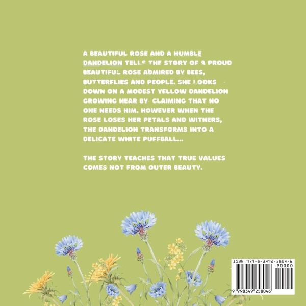 In a garden where beauty is admired, a proud red rose basks in attention, while a humble dandelion stands unnoticed. The rose boasts of her charm, believing she is superior. But as time passes, the rose withers, while the dandelion transforms into a delicate puffball, bringing joy to a child who blows its seeds into the wind. Through this gentle tale, young readers learn that true value isn't found in outward beauty but in the happiness and purpose one brings to others.