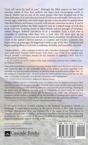 "God will never be mad at you!" Although the Bible assures us that God's essential nature is love, how seldom one hears such encouraging words in church. Maybe you are one of the many people who have dropped out of the church because of its prevalent portrayal of God as an unfriendly old man who is always angry with those who don't shape up and, worse yet, plans to punish those who don't believe and behave correctly with eternal conscious torment. If you've ever wondered whether the Bible supports such an irritated image of God, this book is for you. Looking closely at major beliefs and key passages of Scripture, author Morgan Roberts introduces us to a friendlier God, a God who is incapable of anything other than love, a God who will never give up on anyone--a God who even loves our enemies! Such a beautiful view of God is the result of the author's lifetime journey as a pastor and teacher, a journey that began when, as a teenager, he happened to find a copy of the New Testament and began reading about a God who is endlessly, foolishly, and incredibly merciful.