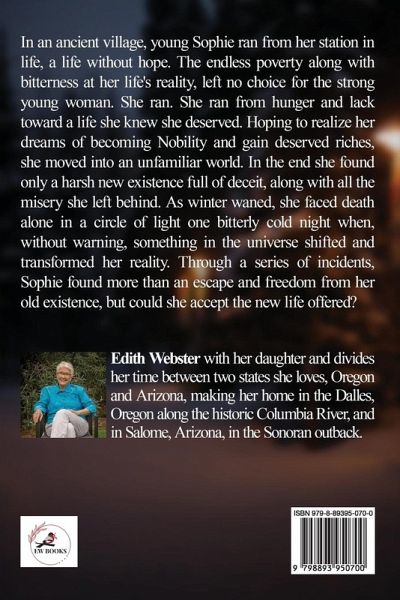 In an ancient village, young Sophie ran from her station in life, a life without hope. The endless poverty along with bitterness at her life's reality, left no choice for the strong young woman. She ran. She ran from hunger and lack toward a life she knew she deserved. Hoping to realize her dreams of becoming Nobility and gain deserved riches, she moved into an unfamiliar world. In the end she found only a harsh new existence full of deceit, along with all the misery she left behind. As winter waned, she faced death alone in a circle of light one bitterly cold night when, without warning, something in the universe shifted and transformed her reality.. Through a series of incidents, Sophie found more than an escape and freedom 1 from her old existence, but could she accept the new life offered?