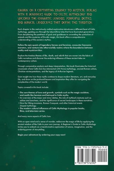 Embark on a captivating journey to mystical realms with A Beginner's Guide to Celtic Mythology and uncover the enigmatic legends, powerful deities, and magical landscapes that define this tradition. Each chapter in this meticulously crafted exploration introduces a different facet of Celtic mythology, guiding you through the labyrinthine tales that have fascinated generations. From deciphering the pantheon of gods and goddesses to unraveling the symbolism of animals and the mysteries of Druidic magic, this book offers a comprehensive understanding of this society's mythos. Follow the epic quests of legendary heroes and heroines, encounter fearsome monsters, and venture into otherworldly realms where the boundaries between reality and mysticism blur. Explore the timeless themes of life, death, and rebirth that are woven into the fabric of Celtic narratives and discover the enduring influence of these ancient tales on contemporary culture. Through comparative analysis and deep interpretation, this book illuminates the historical crossroads where Celtic lore has intersected with Norse mythology, ancient Roman culture, Christian reinterpretations, and the legacy of Arthurian legends. Gain insight into how these myths continue to shape modern literature, art, and everyday life, and draw on the profound lessons and inspiration they offer for navigating the complexities of the modern world. Topics covered in this book include: The core themes of love and growth, symbols such as the magic cauldron, and motifs like heroism and betrayal in Celtic myths. An overview of the major and minor deities, the role of mythical creatures such as selkies and banshees, and the significance of sacred landscapes in these narratives. How the Viking invasions, Roman Conquest, and other historical events shaped mythology. The modern cultural influences of Celtic Mythology in popular books, films, and television series. And many more aspects of Celtic lore. With an open mind and a sense of wonder, rediscover the magic of life by applying the ancient wisdom of the Celts to your own journey. A Beginner's Guide to Celtic Mythology invites you to embark on a transformative exploration of nature, imagination, and the enduring power of storytelling.