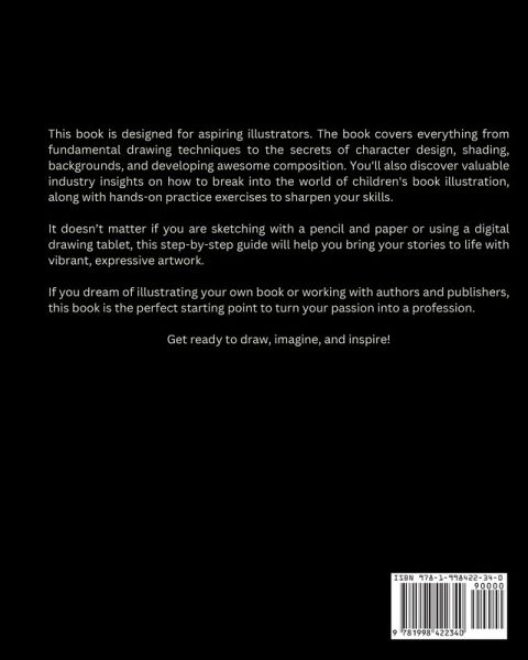 I created this book for aspiring creatives that dream of becoming an Illustrator. This book covers everything from basic fundamental drawing techniques, to the secrets of character design, backgrounds, shading, digital artwork skills, and even storyboarding. You'll also discover valuable industry insights on how to break into the world of children's book illustration, along with hands-on practice exercises to help sharpen your skills. It doesn't matter if you are sketching with a pencil and paper, or using a digital drawing tablet, this step-by-step guide will help you bring any story to life. Illustrating children's books is a fulfilling and lucrative career for those with a passion for art and storytelling. By understanding the market, developing your skills, building a strong portfolio, and effectively marketing yourself, you can turn your love of art into a profitable profession by using this book as your beginners guide. Get ready to draw, imagine, and be inspired!