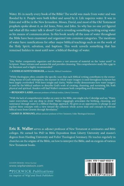 Water. It's in nearly every book of the Bible! The world was made from water and was flooded by it. People were both killed and saved by it. Life requires water. It was in Eden and will be in the New Jerusalem. Moses, David, and most of the Old Testament prophets spoke about it, as did Jesus, Peter, and John. So why has no one yet figured out what all this water talk is about? God is revealing something exciting using water as his means of communication. In this book nearly all the uses of water throughout the Bible have been examined and organized into common categories. The mentions of water have ramifications for other major biblical teachings such as on the work of the Holy Spirit, salvation, and baptism. This work unveils something that has remained hidden to most until now: a biblical theology of water.
