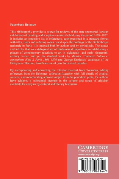 This bibliography provides a source for reviews of the state-sponsored Parisian exhibitions of painting and sculpture (Salons) held during the period 1699 1827.