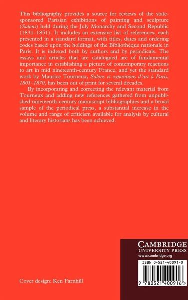 This bibliography provides a source for reviews of the state-sponsored Parisian exhibitions of painting and sculpture (Salons) during 1831 1851.
