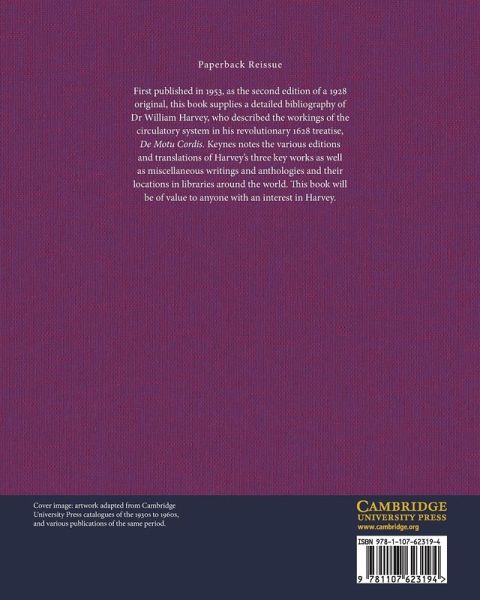 First published in 1953, as the second edition of a 1928 original, this book supplies a detailed bibliography of Dr William Harvey, who described the workings of the circulatory system in his revolutionary 1628 treatise, De Motu Cordis. Keynes notes the various editions and translations of Harvey's three key works as well as miscellaneous writings and anthologies and their locations in libraries around the world. This book will be of value to anyone with an interest in Harvey.