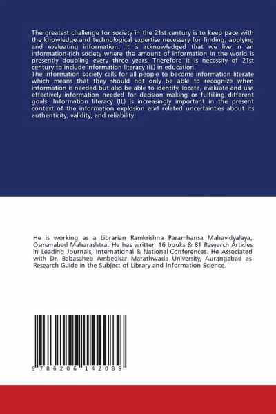 The greatest challenge for society in the 21st century is to keep pace with the knowledge and technological expertise necessary for finding, applying and evaluating information. It is acknowledged that we live in an information-rich society where the amount of information in the world is presently doubling every three years. Therefore it is necessity of 21st century to include information literacy (IL) in education.The information society calls for all people to become information literate which means that they should not only be able to recognize when information is needed but also be able to identify, locate, evaluate and use effectively information needed for decision making or fulfilling different goals. Information literacy (IL) is increasingly important in the present context of the information explosion and related uncertainties about its authenticity, validity, and reliability.