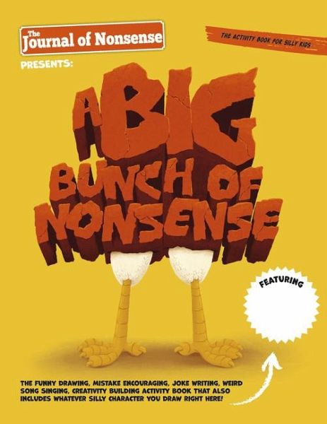 A BIG BUNCH OF NONSENSE is the funny activity book for silly kids and tweens who like to make up jokes, sing silly songs, draw ridiculous pictures, and read poems to pineapples. Created by the folks who bring you The Journal of Nonsense magazine, A Big Bunch of Nonsense features over 91.357546 pages of hilarious activities, ridiculous recipes, quizzical quizzes, and detailed instructions on how to take care of your pet salad. It's the perfect book for silly kids aged 6-12 or serious tortoises aged 78-147. -Learn how to write jokes! -Discover how fish make tacos! -Pretend to be a sound effects machine! -Invent new words! -Take a quiz to find out if you're a dinosaur! -Tell stories about a turkey! -Solve the case of who stole the cookie jar! -Make mistakes on purpose! -Write poems about frogs! -Spot the difference between a bear and a human! -Make up rules for a board game! -Find out how to become older than your older sibling! -Doodle on an ostrich! -Act like you're being controlled by a remote! -Complete a word search that has no real words! -Sing about birds! -Send in your work to be featured in future publications!