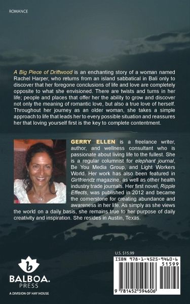 A Big Piece of Driftwood is an enchanting story of a woman named Rachel Harper, who returns from an island sabbatical in Bali only to discover that her foregone conclusions of life and love are completely opposite to what she envisioned. There are twists and turns in her life; people and places that offer her the ability to grow and discover not only the meaning of romantic love, but also a true love of herself. Throughout her journey as an older woman, she takes a simple approach to life that leads her to every possible situation and reassures her that loving yourself first is the key to complete contentment.