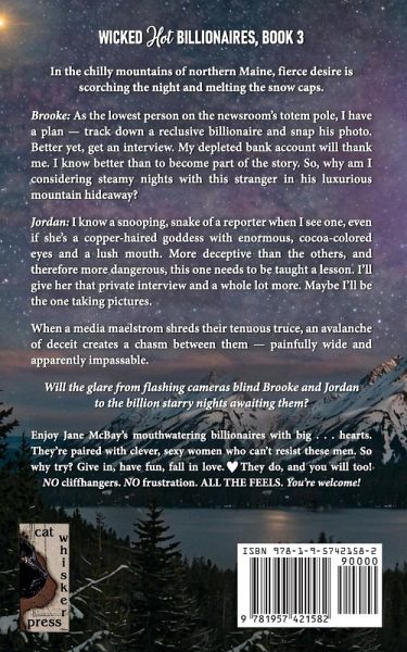 In the chilly mountains of northern Maine, fierce desire is scorching the winter nights and melting the snow caps. Brooke: As the lowest person on the newsroom's totem pole, I have a plan - track down a reclusive billionaire and snap his photo. Better yet, get an interview. My depleted bank account will thank me. I know better than to become part of the story. So, why am I considering steamy nights with this stranger in his luxurious mountain hideaway? Jordan: I know a snooping, venomous reporter when I see one, even if she's a copper-haired goddess with enormous, cocoa-colored eyes and a lush mouth. More deceptive than the others, and therefore more dangerous, this one needs to be taught a lesson. I'll give her that private interview and a whole lot more. Maybe I'll be the one taking pictures. When a media maelstrom shreds their tenuous truce, an avalanche of deceit creates a chasm between them - painfully wide and apparently impassable. Will the glare of flashing cameras blind Brooke and Jordan to the billion starry nights awaiting them?