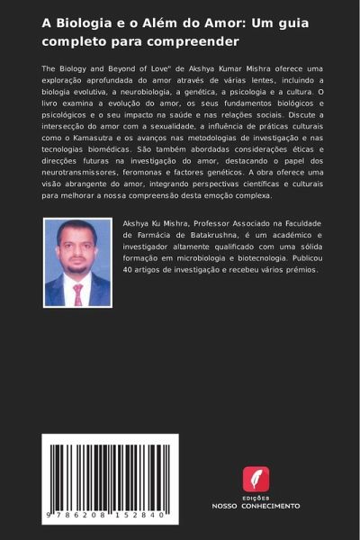 The Biology and Beyond of Love" de Akshya Kumar Mishra oferece uma exploração aprofundada do amor através de várias lentes, incluindo a biologia evolutiva, a neurobiologia, a genética, a psicologia e a cultura. O livro examina a evolução do amor, os seus fundamentos biológicos e psicológicos e o seu impacto na saúde e nas relações sociais. Discute a intersecção do amor com a sexualidade, a influência de práticas culturais como o Kamasutra e os avanços nas metodologias de investigação e nas tecnologias biomédicas. São também abordadas considerações éticas e direcções futuras na investigação do amor, destacando o papel dos neurotransmissores, feromonas e factores genéticos. A obra oferece uma visão abrangente do amor, integrando perspectivas científicas e culturais para melhorar a nossa compreensão desta emoção complexa.