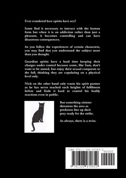 Ever wondered how spirits have sex? Some find it necessary to interact with the human form but when it is an addiction rather than just a pleasure, it becomes controlling and can have disastrous consequences. As you follow the experiences of certain characters, you may find that you understand the subject more than you thought. Guardian spirits have a hard time keeping their charges under control because some, like Sam, don't want to be tamed, but enjoy their sexual conquests to the full, thinking they are copulating on a physical level only. Nick on the other hand only wants his spirit partner as he has never reached such heights of fulfilment before and finds it hard to control his bodily reactions even in public. But something sinister threatens the area as predators line up their prey ready for the strike. As always, there is a twist.