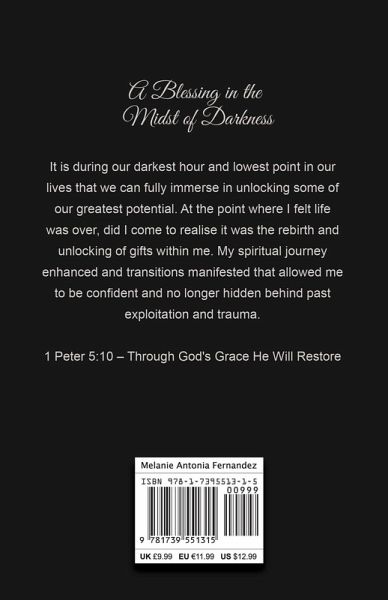 It is during our darkest hour and lowest point in our lives that we can fully immerse in unlocking some of our greatest potential. At the point where I felt life was over, did I come to realise it was the rebirth and unlocking of gifts within me. My spiritual journey enhanced and transitions manifested that allowed me to be confident and no longer hidden behind past exploitation and trauma. 1Peter5:10-Through God's Grace He Will Restore