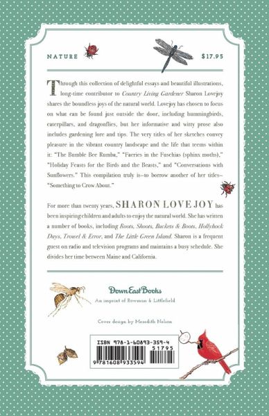 Through this collection of delightful essays and beautiful illustrations, long-time contributor to Country Living Gardner Sharon Lovejoy shares the boundless joys of a country garden. Lovejoy has chosen to focus on the natural world to be found just outside the door, including hummingbirds, caterpillars, and dragonflies, but her informative and witty prose also covers traditional plant care. The very titles of her sketches convey pleasure in the vibrant country landscape and the life that teems within it: "The Bumble Bee Rumba," "Faeries in the Fuschias (sphinx moths)," "Holiday Feasts for the Birds and the Beasts," and "Conversations with Sunflowers." This compilation truly is—to borrow another of her titles—"Something to Crow About."
