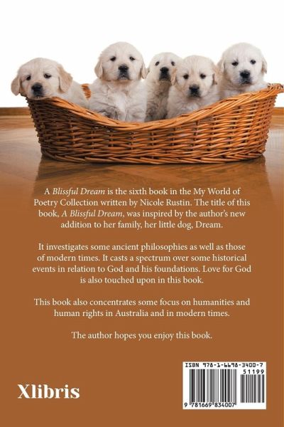 A Blissful Dream is the sixth book in the My World of Poetry Collection. The title of this book A Blissful Dream was inspired by the authors new edition to her family, her little dog Dream. It investigates some ancient philosophies as well as those of modern times. It casts a spectrum over some historical events in relation to God and his foundations. Love for God is also touched upon in this book. This book also concentrates some focus on humanities and human rights in Australia and in modern times. The author hopes you enjoy this book.