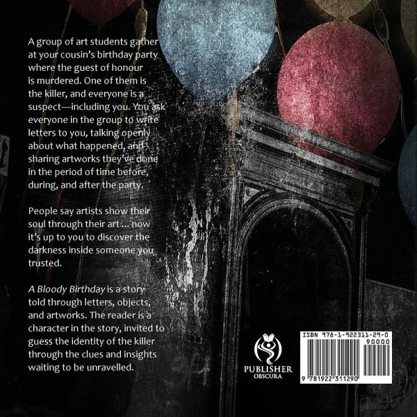 A group of art students gather at your cousin's birthday party where the guest of honour is murdered. One of them is the killer, and everyone is a suspect-including you. You ask everyone in the group to write letters to you, talking openly about what happened, and sharing artworks they've done in the period of time before, during, and after the party. People say artists show their soul through their art ... now it's up to you to discover the darkness inside someone you trusted. A Bloody Birthday is a story told through letters, objects, and artworks. The reader is a character in the story, invited to guess the identity of the killer through the clues and insights waiting to be unravelled.