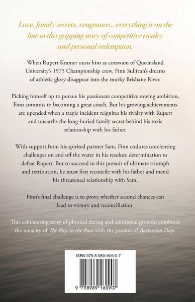 Love, family secrets, vengeance... everything is on the line in this gripping story of competitive rivalry and personal redemption. When Rupert Kramer ousts him as coxswain of Queensland University's 1975 Championship crew, Finn Sullivan's dreams of athletic glory disappear into the murky Brisbane River. Picking himself up to pursue his passionate competitive rowing ambition, Finn commits to becoming a great coach. But his growing achievements are upended when a tragic incident reignites his rivalry with Rupert and unearths the long-buried family secret behind his toxic relationship with his father. With support from his spirited partner Sam, Finn endures unrelenting challenges on and off the water in his resolute determination to defeat Rupert. But to succeed in this pursuit of ultimate triumph and retribution, he must first reconcile with his father and mend his threatened relationship with Sam. Finn's final challenge is to prove whether second chances can lead to victory and reconciliation. This exhilarating story of physical daring and emotional growth, combines the tenacity of The Boys in the Boat with the passion of Barbarian Days.