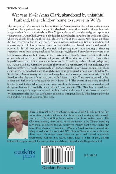 The war year of 1942 was not the best of times for Anna Brendon Clark. Now a single mom abandoned by a philandering husband in Maryland to raise three small children, her only refuge was her family and friends in West Virginia, the world that she had grown up in as a young woman. Anna Clark gave up a life that she had wished to have for a life with John Clark, whom she deeply loved, and three small children borne of their union. Now being left alone she had no option but to rely on her determination, natural abilities as a mother, and unwavering faith in God to make a way for her children and herself in a limited world of poverty. Little Lil, two years old, was sick and getting sicker soon needing a lifesaving operation. Anna's two young bright and fun loving sons, Jake and Danny, knew they were poor but no matter they would find ways to help their mother. Anna's vision of a better life and a college education for her children had grown dark. Returning to Greenbrier County they began life over in an old four room farm house north of Lewisburg with no electric, telephone, and indoor plumbing. Unknown events in the years of the American Civil War and after, a war that was terribly evil, would mysteriously affect Anna's family in ways never anticipated. These events were connected to Danny through his now dead great grandfather, Daniel Brendon. Ms. Sarah Burl, Anna's ninety two year old neighbor, had a teenage love affair with Daniel Brendon, when he was a farm hand on the Burl farm in 1868. They were separated by her mother and father only to be together when Sarah died. The events of that time involved Sarah's brutal father, Mike Burl, and were awash with covert hate, greed, murder, and deception, but would come full circle to affect Anna's family in 1942. Mike Burl, a hated slave owner, was a greedy opportunist working both sides of the war for his financial benefit. Without remorse he shot four confederate soldiers to steal payroll