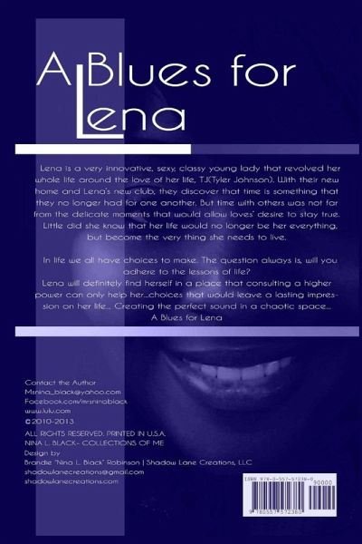 In life we all have choices to make. The question always is, will you adhere to the lessons of life? Lena will definitely find herself in a place that consulting a higher power can only help her...choices that would leave a lasting impression on her life, creating the perfect sound in a chaotic space...A Blues for Lena.