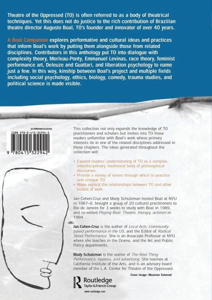 This carefully constructed and thorough collection of theoretical engagements with Augusto Boal's work is the first to look 'beyond Boal' and critically assesses the Theatre of the Opressed (TO) movement in context. A Boal Companion looks at the cultural practices which inform TO and explore them within a larger frame of cultural politics and performance theory. The contributors put TO into dialogue with complexity theory - Merleau-Ponty, Emmanuel Levinas, race theory, feminist performance art, Deleuze and Guattari, and liberation psychology - to name just a few, and in doing so, the kinship between Boal's project and multiple fields of social psychology, ethics, biology, comedy, trauma studies and political science is made visible. The ideas generated throughout A Boal Companion will: expand readers' understanding of TO as a complex, interdisciplinary, multivocal body of philosophical discourses provide a variety of lenses through which to practice and critique TO make explicit the relationship between TO and other bodies of work. This collection is ideal for TO practitioners and scholars who want to expand their knowledge, but it also provides unfamiliar readers and new students to the discipline with an excellent study resource.